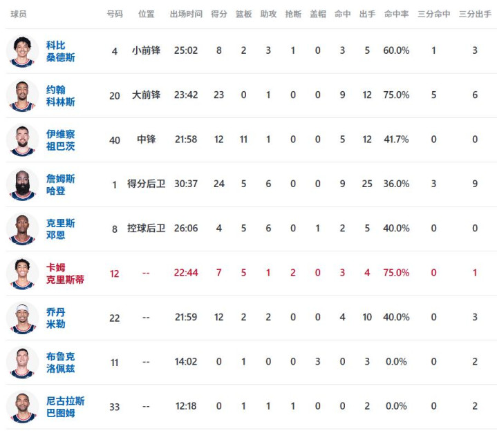下半场开局,快船发起绝地反击,凭借顽强攻防一度将分差缩小至个位数。遗憾的是,第三节末尾快船失误频发,公牛抓住机会再度拉开分差,重回两位数领先。哈登虽拼尽全力,却难掩全队状态低迷的困境。末节公牛稳扎稳打,牢牢掌控领先优势,最终锁定胜局。