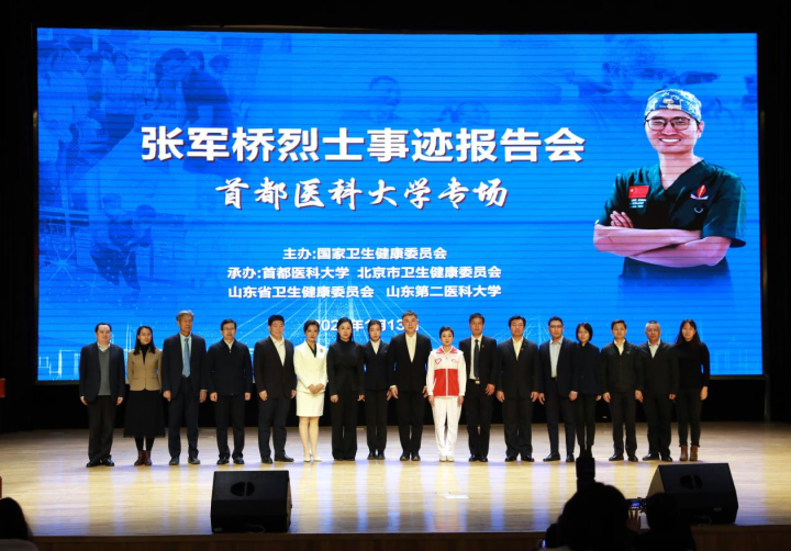 为大力弘扬崇高职业精神和中国医疗队精神,张军桥烈士事迹报告会日前走进首都医科大学。来自首都医科大学各学院、临床医学院的师生代表,以及首都卫生健康系统26家医疗机构的医务人员代表共计600余人齐聚现场,共同缅怀这位用生命诠释医者担当的援外英雄。
