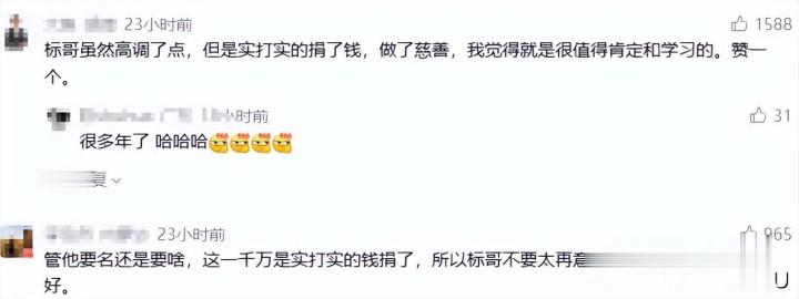 支撑者合计正人论迹非论心,不管他是否高调、是否介怀名声,1000万真金白银打到了病院账户上,这自己就无法否定。