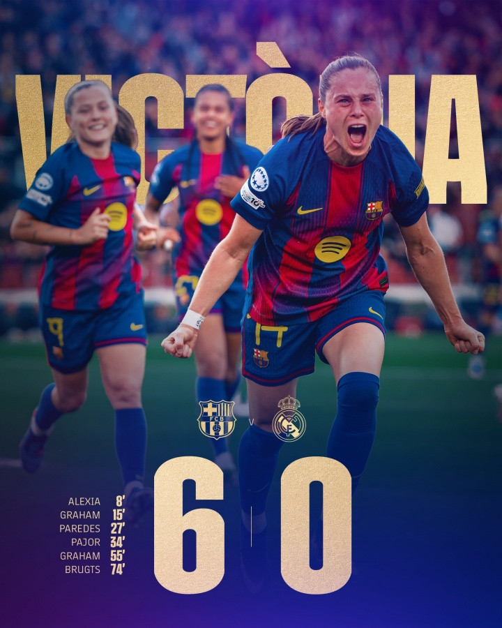 直播吧04月03日讯当天凌晨进行的女足欧冠1/4决赛次回合,巴萨女足6-0大捷皇马女足,总比分12-2横扫敌手晋级。