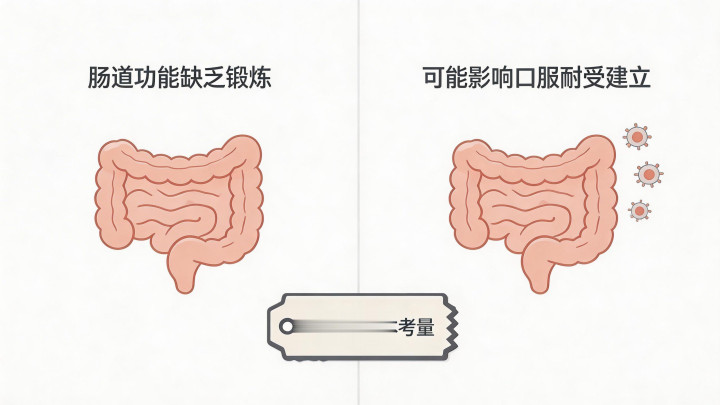 肠说念功能穷乏“测验”:肠说念的消化和免疫樊篱功能,需要在斗争各式食物卵白的刺激中逐渐闇练和完善。始终笼罩系数完满卵白,就像肌肉穷乏测验,可能不利于肠说念树立弘远的耐受和责罚能力。