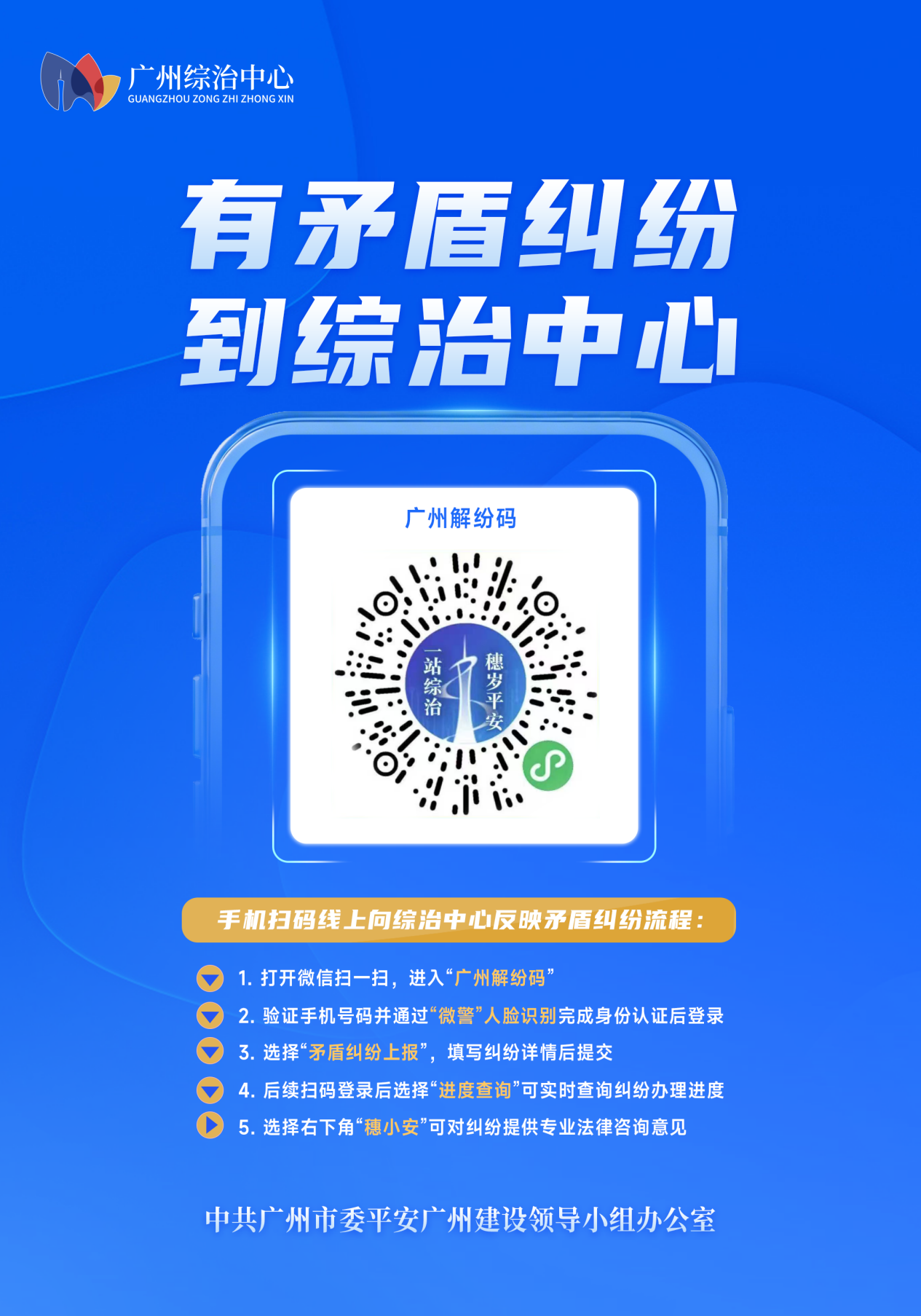 据先容,“广州解纷码”是面向高大天下的线上服务平台。市民遭受家庭邻里、物业服务、工作争议、民事经济等矛盾纠纷,齐可通过扫描“广州解纷码”提交诉求。